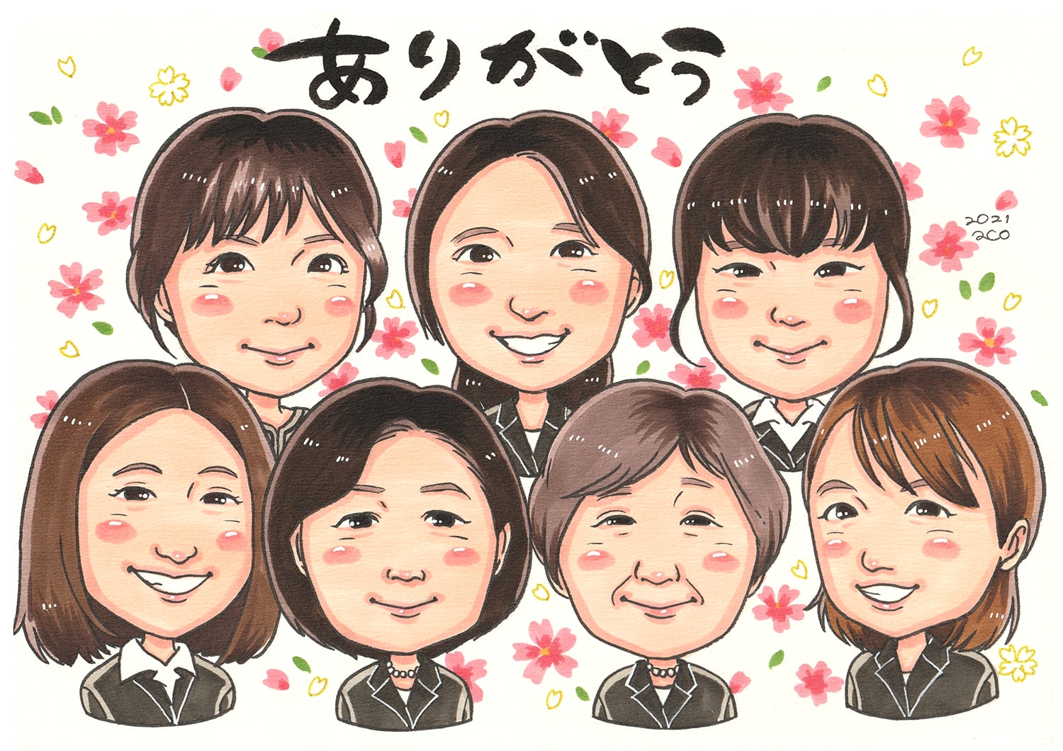・7人の似顔絵(バラバラで写っているものでOKです。お写真をできれば各数枚ずつお送りください)