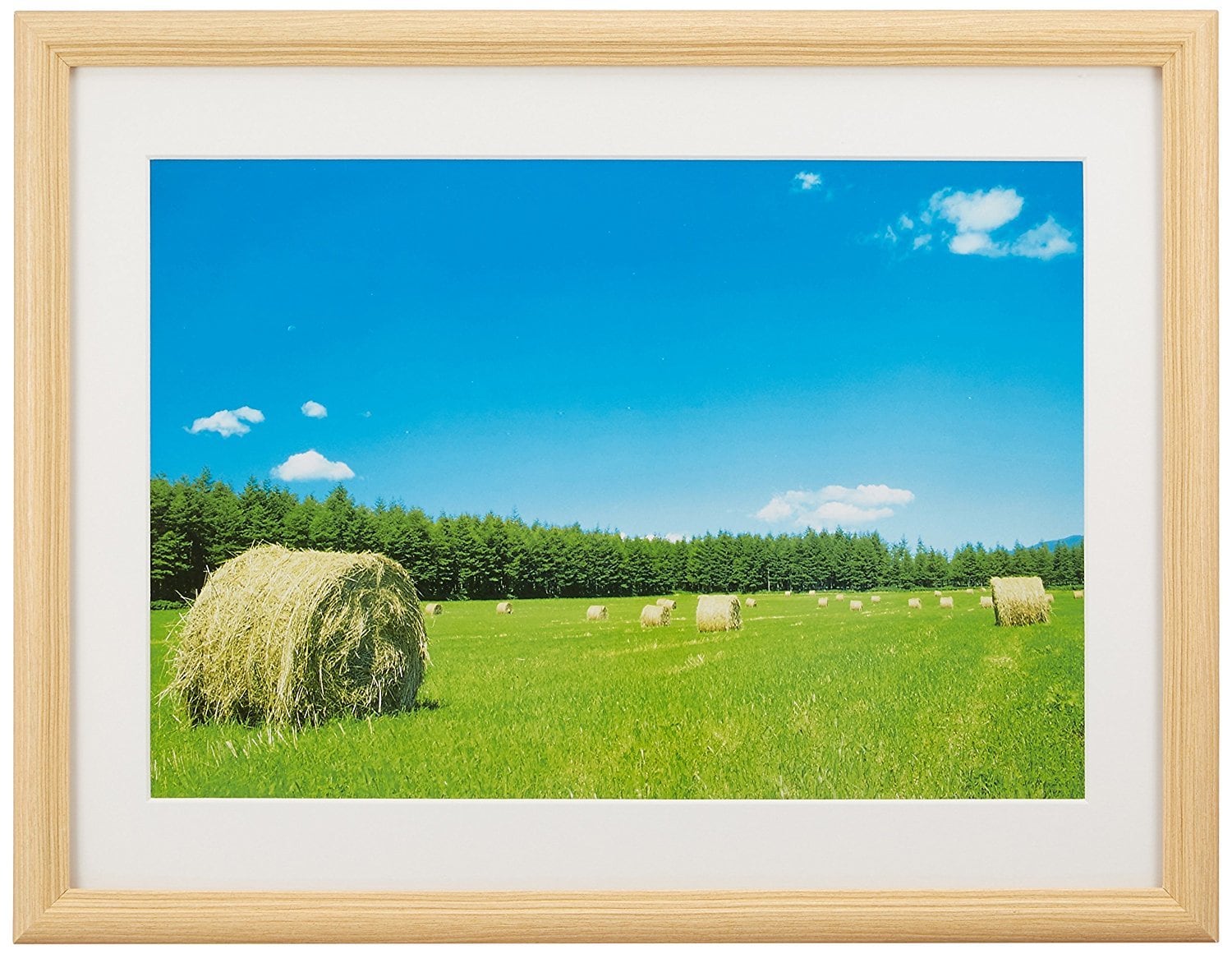 軽くて割れない透明アクリルタイプの額です。 カラー:木地色 木製 厚手Vカット台紙(1.3mm) 付属品:吊紐 額縁外寸:347×452mm 額縁内寸:305×410mm マット台紙外寸:315×420mm マット台紙内寸:238×350mm 重量:1030g